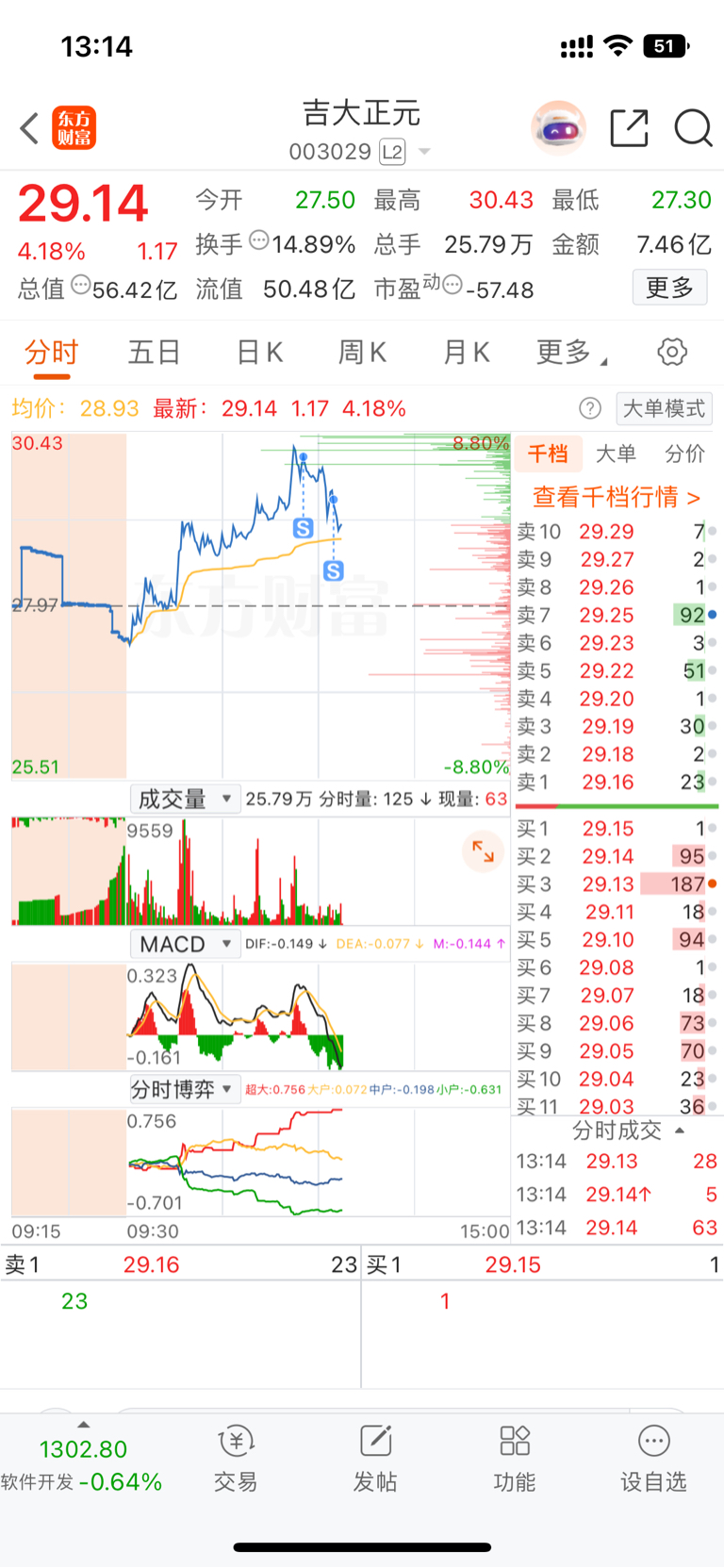 $吉大正元(SZ003029)$ 获利了结 6个点