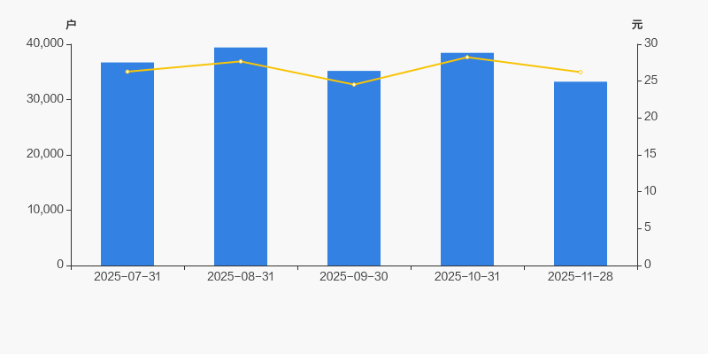 2025年7月31日至今,公司股东户数有所下降,区间跌幅为9.49%。2025年7月31日至2025年11月28日区间股价下降0.23%。