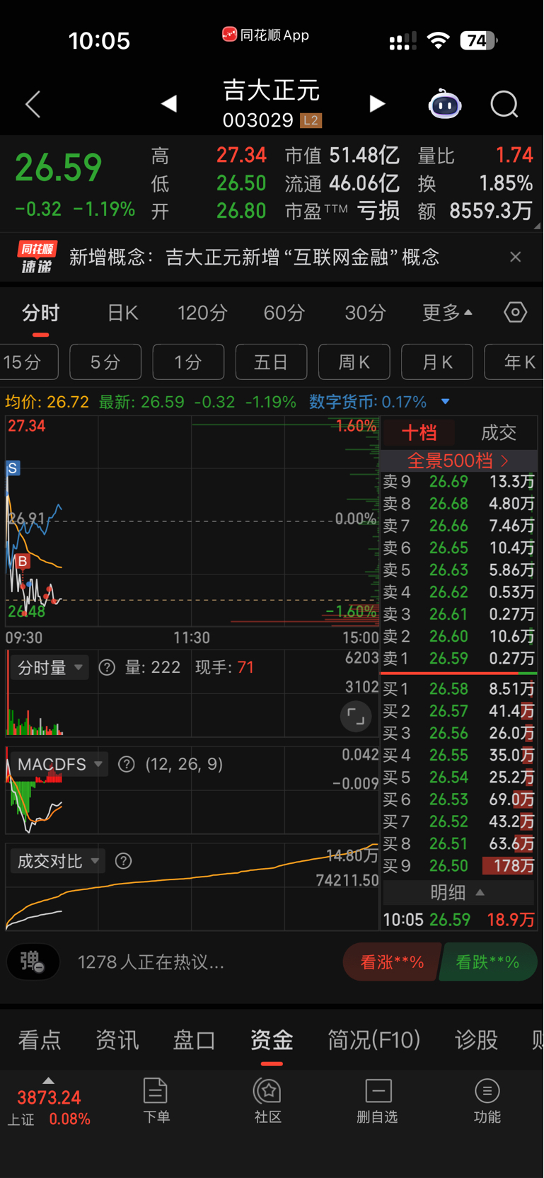 $吉大正元(SZ003029)$ 等待寻底,一点一点的买