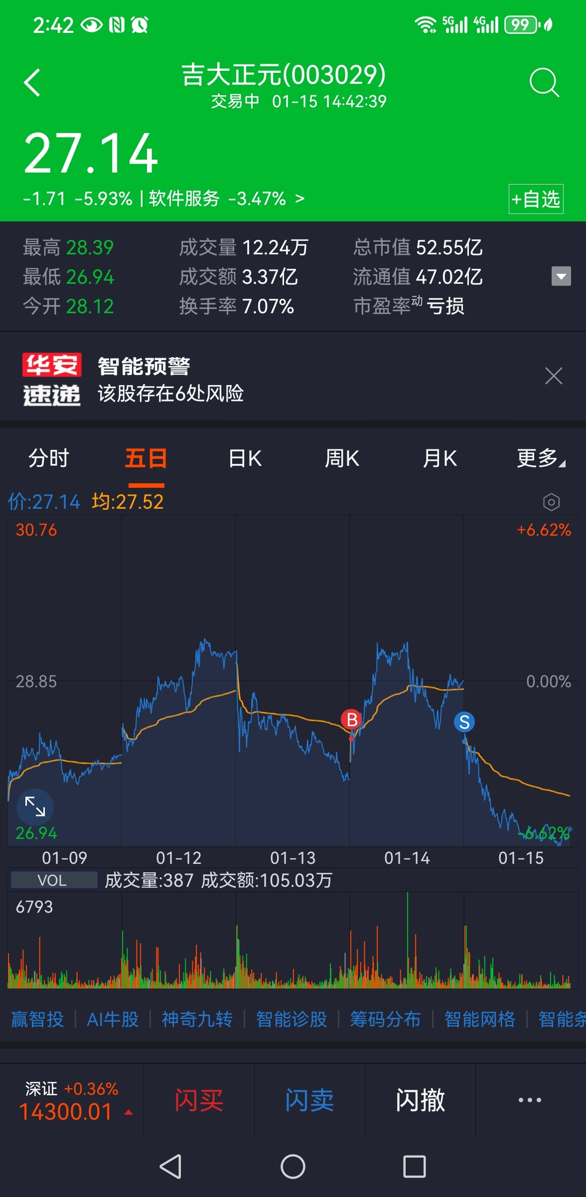 $吉大正元(SZ003029)$ 一大早止损对了,这个位置减持,无语了