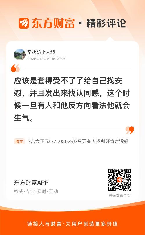 温馨提示: 1.根据《证券法》规定,禁止编造、传播虚假信息或者误导性信息,扰乱证券市场;2.用户在本社区发表的所有资料、言论等仅代表个人观点,与本网站立场无关,不对您构成任何投资建议。用户应基于自己的独立判断,自行决定证券投资并承担相应风险。《东方财富社区管理规定》