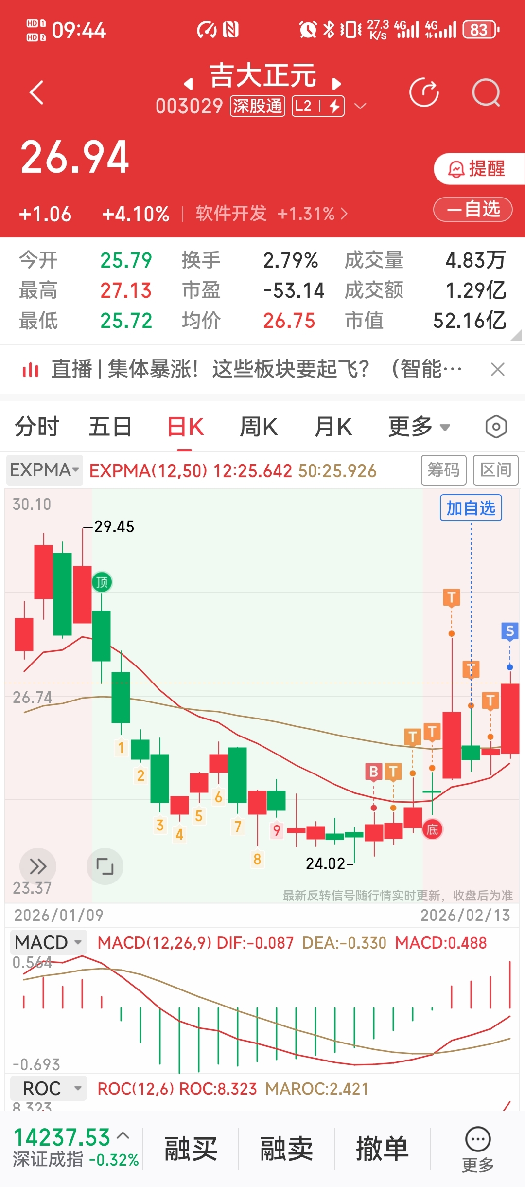 $吉大正元(SZ003029)$ 满仓的感觉 还是舒服