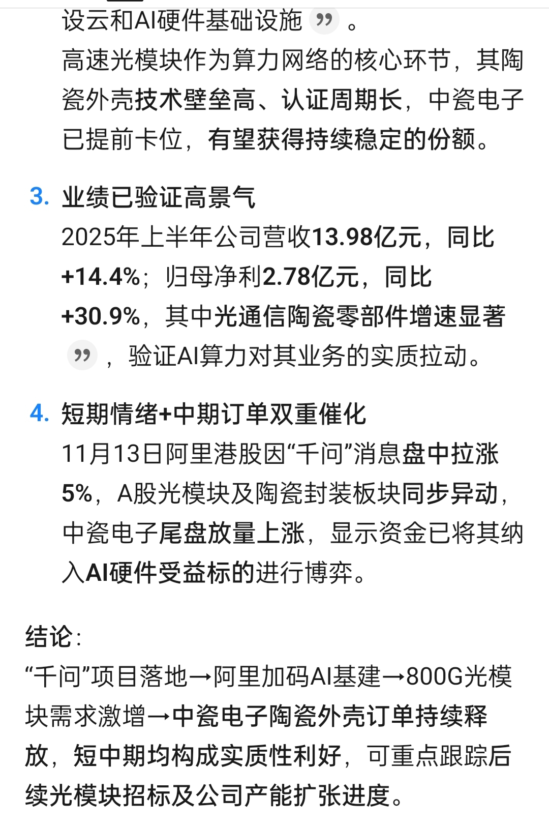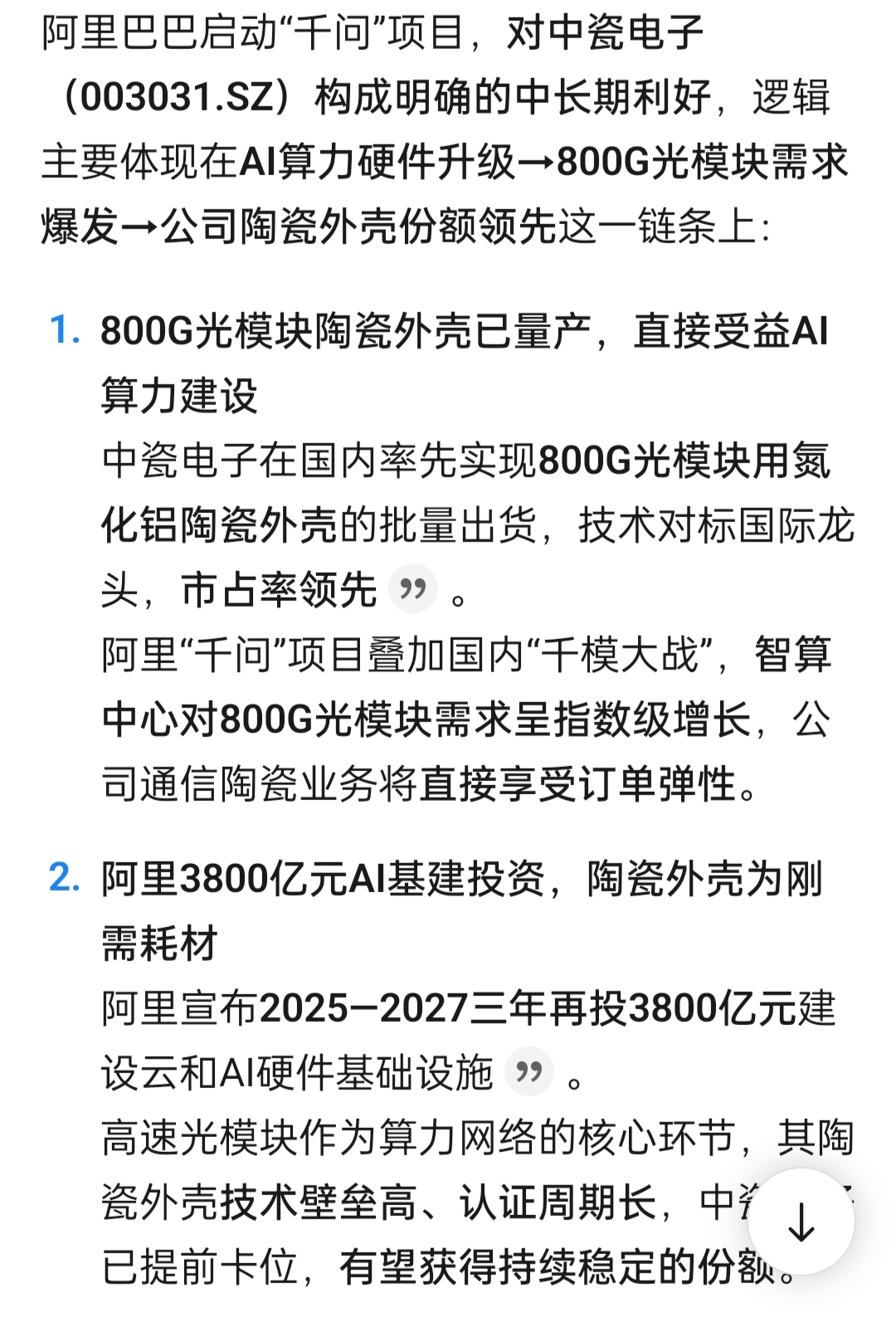 $中瓷电子(SZ003031)$ 有阿里千问吗?