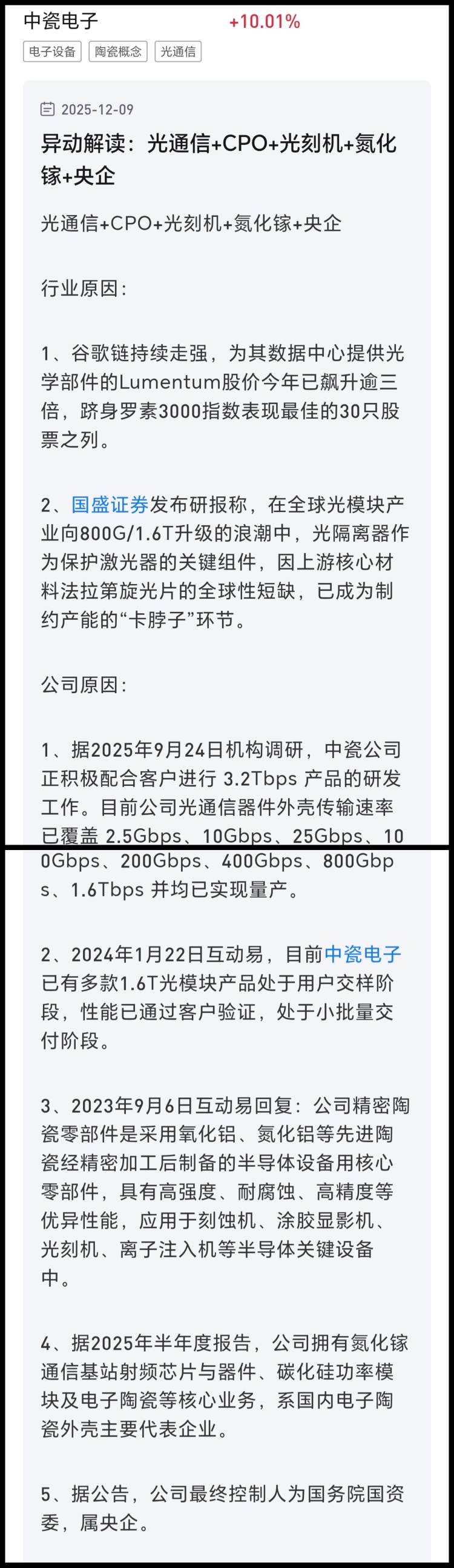 $中瓷电子(SZ003031)$