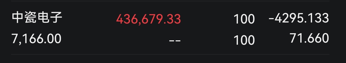 $中瓷电子(SZ003031)$ 留100股记个账。下一波再来。