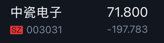 $中瓷电子(SZ003031)$ 留个10%仓位 今天下午2点回来。前天烂板昨天的不好看 硬着头皮14:55出了。中兴黑天鹅要把通讯板块拖下水。板块不健康先求稳一把。落子无悔