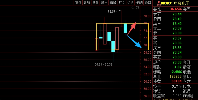 $中瓷电子(SZ003031)$ 近期走比较强,连续拉升后,目前正在做一个高位的横盘整理,接下来主要看一个箱体的得失,能稳住问题不大,至少能看震荡,但有效跌破就要注意回落风险了,需要控制仓位应对。#炒股日记# #周末杂谈#