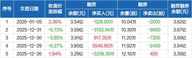 中瓷电子:融资净偿还528.59万元,融资余额3.54亿元(01-05)