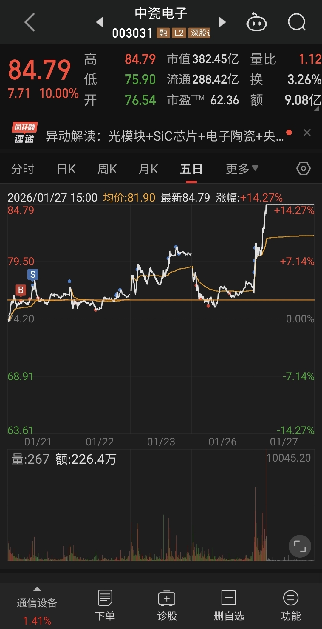 $中瓷电子(SZ003031)$ 明天涨停概率不大,高开后打算把剩下的筹码都倒出去。