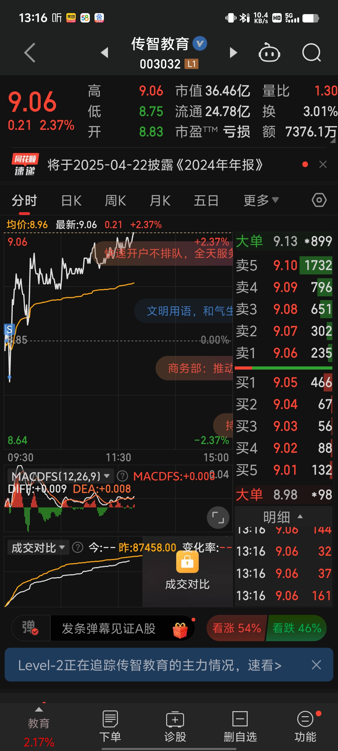 $传智教育(SZ003032)$ 今天没时间看盘,天天担心年报低于3亿ST,开盘下杀割到最低点,我第大重仓,买入时基本面杠杠的,拿了一年,几次有10%+利润没出来,想等主升,没想到基本面突然变差到即有可能ST。君子不立于危墙下,先割肉出来,等年报消息。亏了我18%