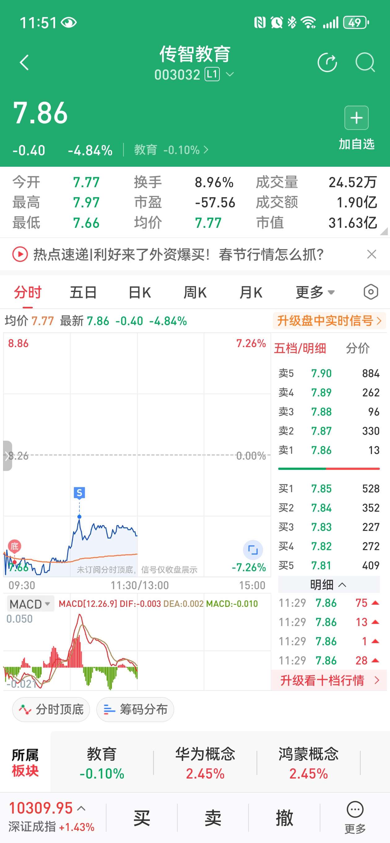 $传智教育(SZ003032)$ 刚刚好啊,谢谢主力哥新年利是