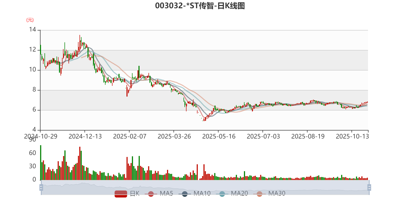中证智能财讯 *ST传智(003032)10月29日披露2025年第三季度报告。前三季度公司实现营业总收入2.69亿元,同比增长48.83%;归母净利润亏损851.32万元,上年同期亏损4121.86万元;扣非净利润亏损1363.62万元,上年同期亏损5966.9万元;经营活动产生的现金流量净额为8267.73万元,上年同期为-4477.08万元;报告期内,*ST传智基本每股收益为-0.0212元,加权平均净资产收益率为-0.68%。