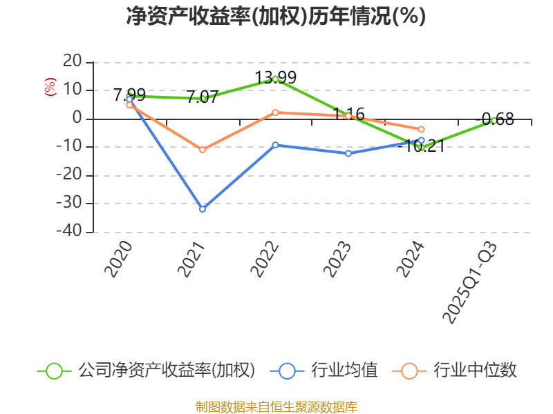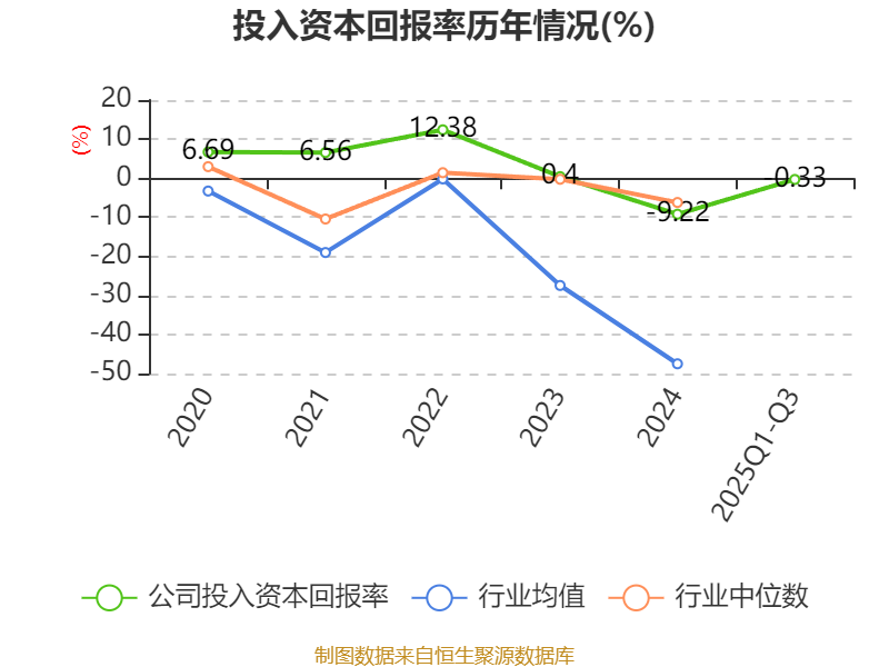盈利能力方面, 2025年前三季度公司加权平均净资产收益率为-0.68%,同比上升2.38个百分点。公司2025年前三季度投入资本回报率为-0.33%,较上年同期上升3.52个百分点。