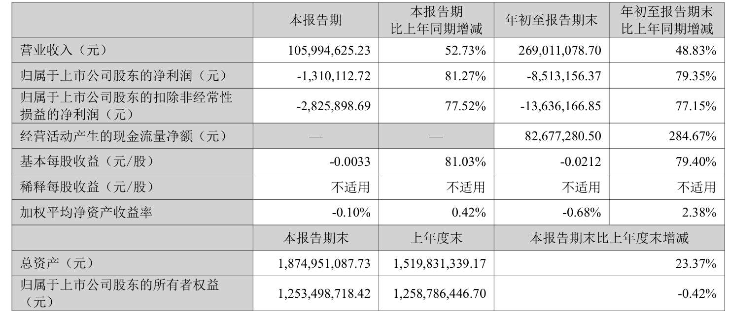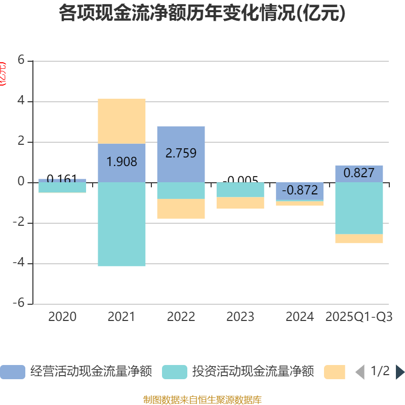 2025年前三季度,公司经营活动现金流净额为8267.73万元,同比增加1.27亿元;筹资活动现金流净额-4373.25万元,同比减少2757.62万元;投资活动现金流净额-2.57亿元,上年同期为-3114.91万元。