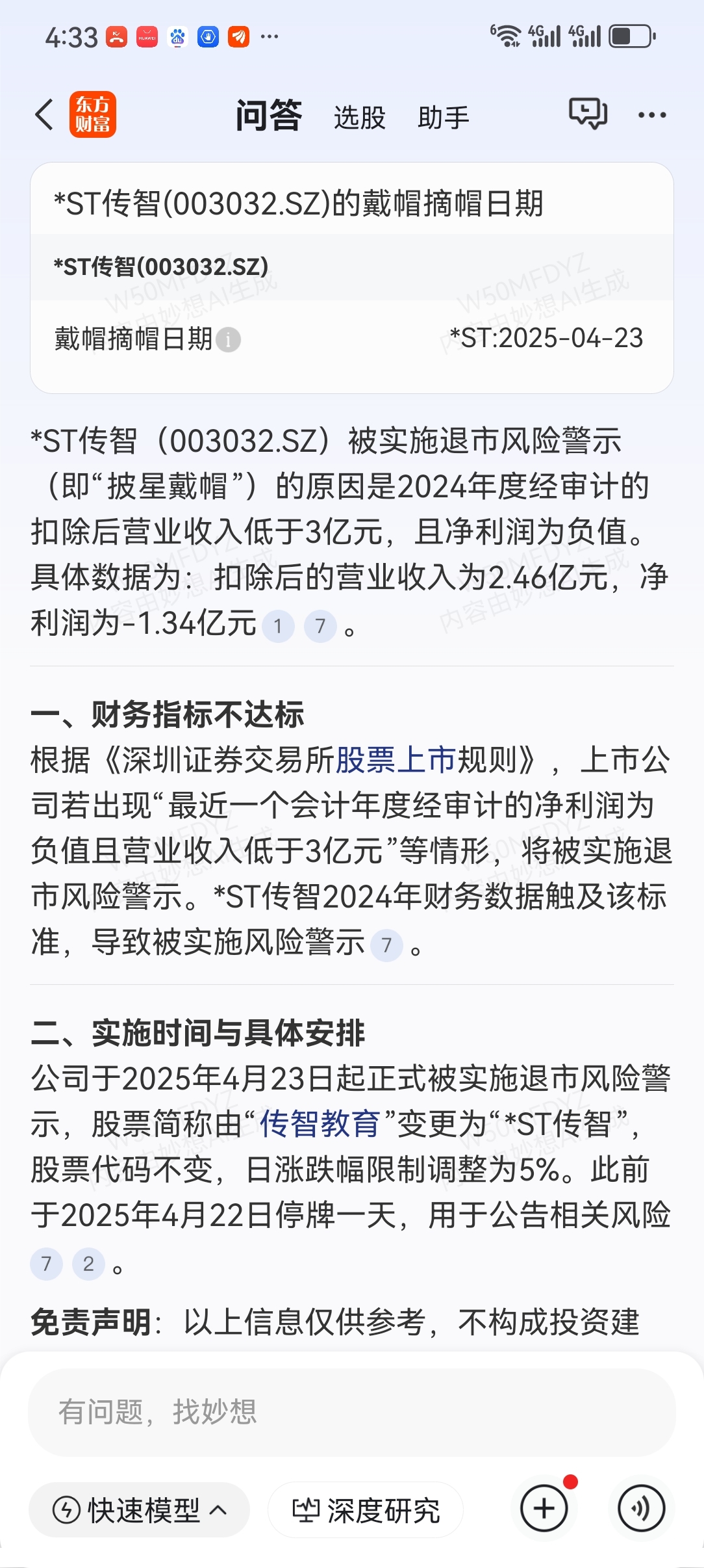 $*ST传智(SZ003032)$ 今年年报扭亏和营收超4亿会不会摘帽?
