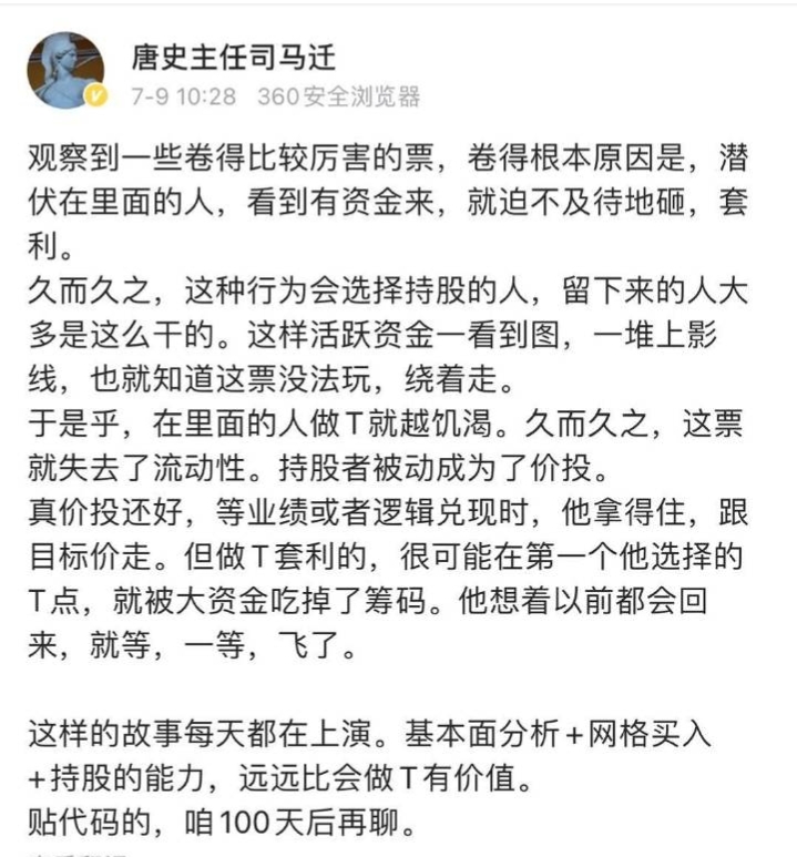 按照大神的说法来看传智,不要看外头花枝招展,到最后让你发财的依旧是家里那个朴实无华的糟糠之妻,所以你们T你们的,我守着我的初心。基本面分析可以摘帽,网格买入持续,不卖我就没亏。
