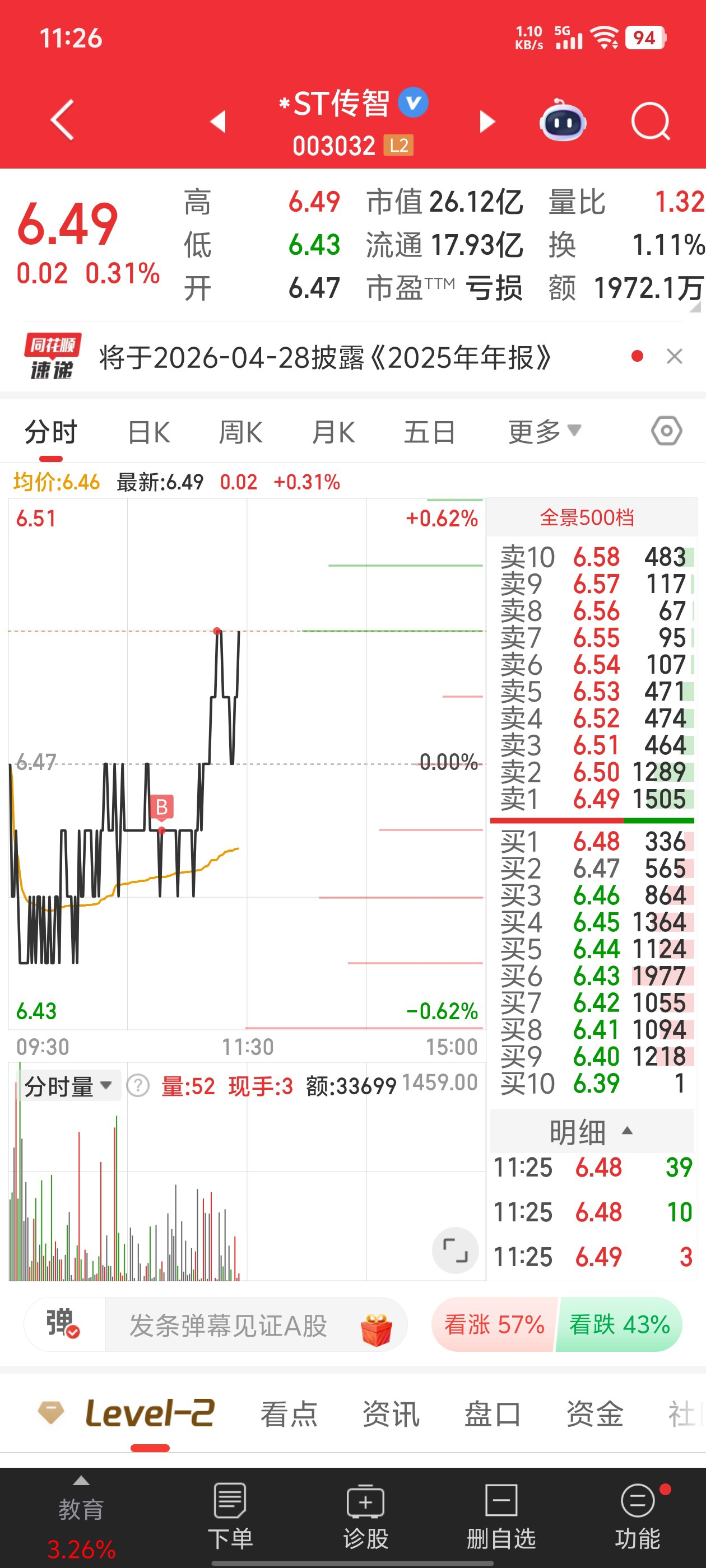 $*ST传智(SZ003032)$ 真的稳,别的股都卖飞了,就只能买点你补补仓位了。