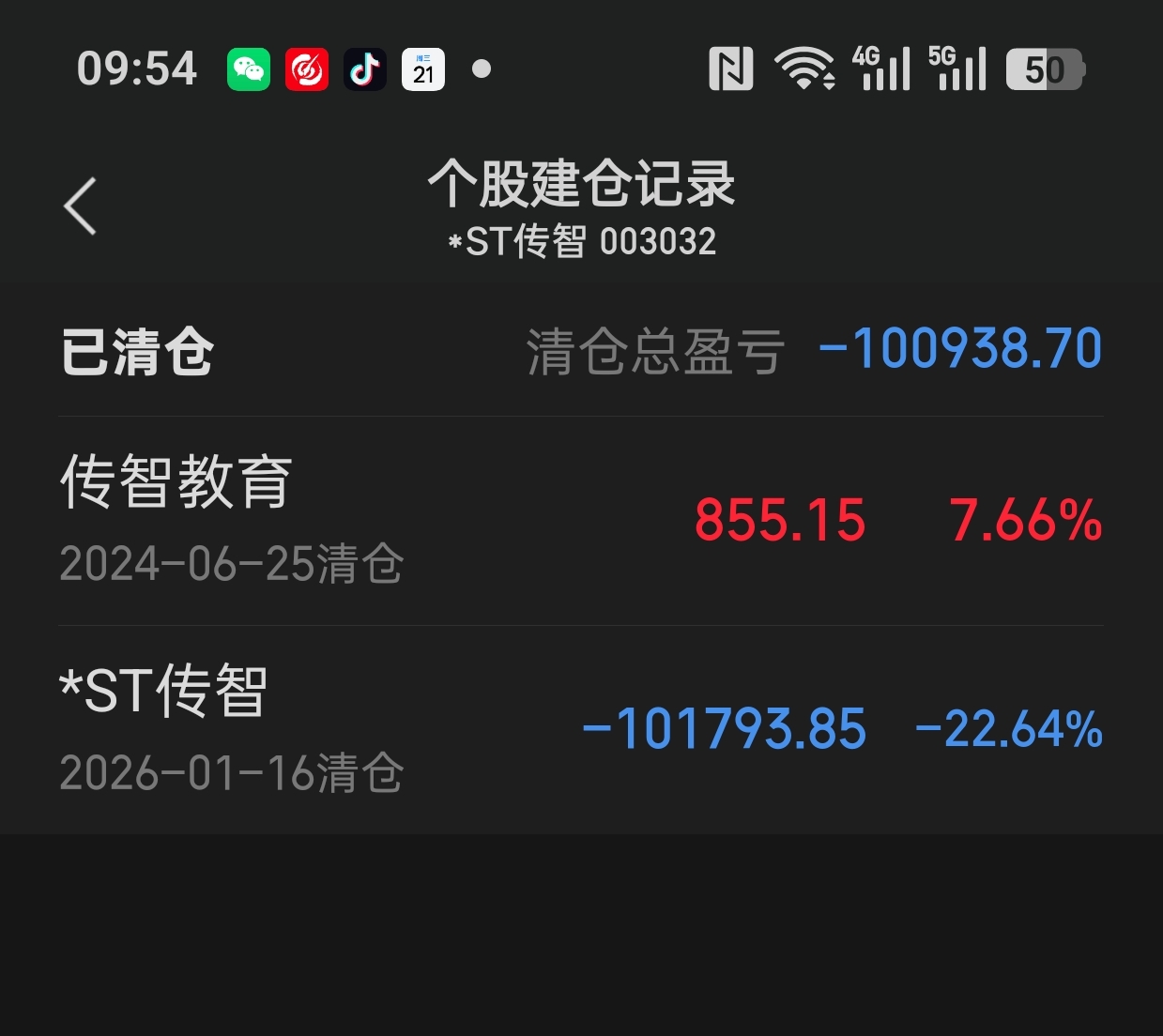 $*ST传智(SZ003032)$ 在传智教育亏损止损改换买入世纪天鸿操作了回把在传智教育亏的十万多兑现回来了,我们敢于止损出局,当时传智教育割价6.665成交的,剩下一百股兑现亏了的才清仓最后一百的