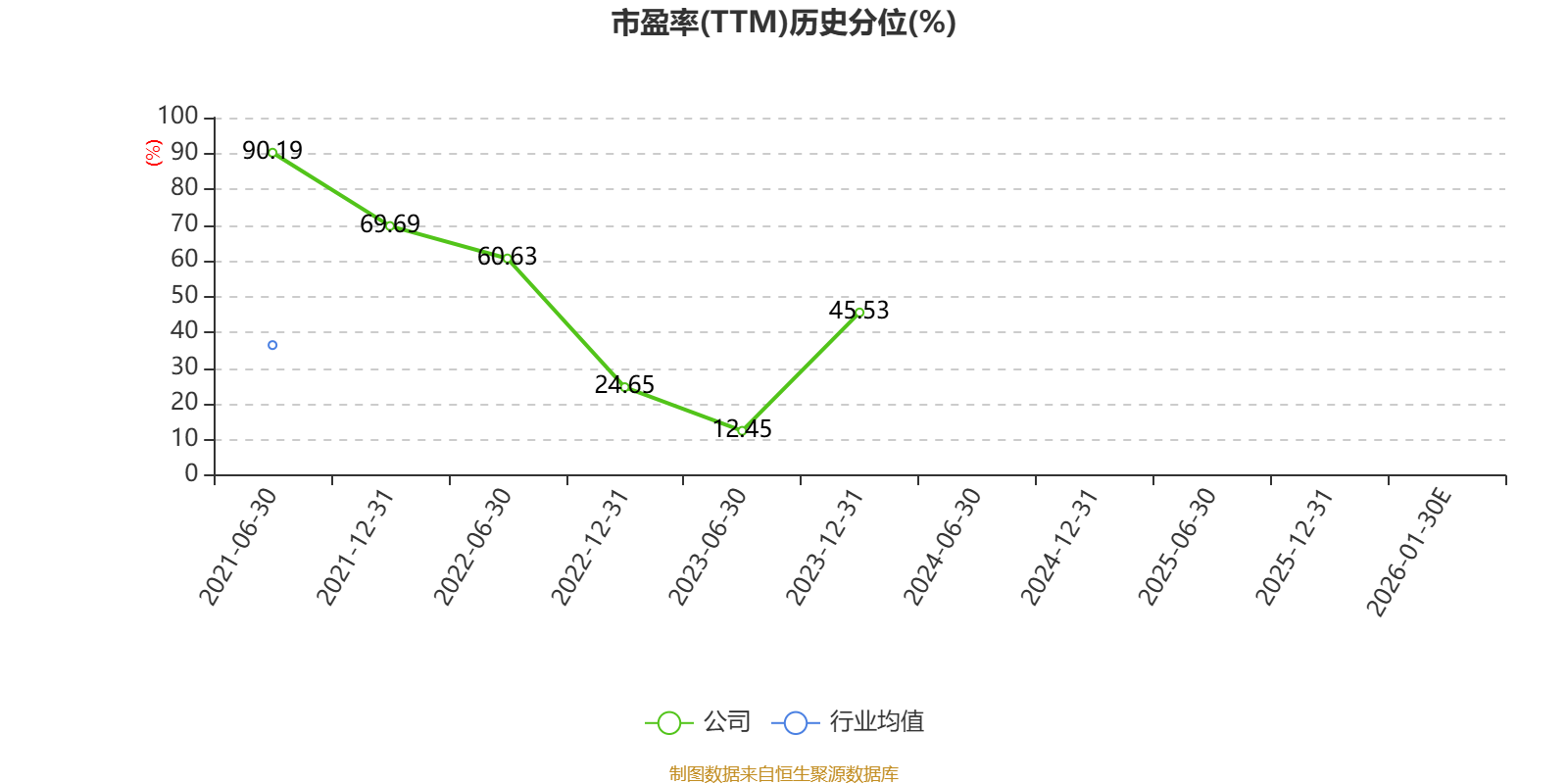 以本次披露业绩预告均值计算,公司近年市盈率(TTM)图如下所示: