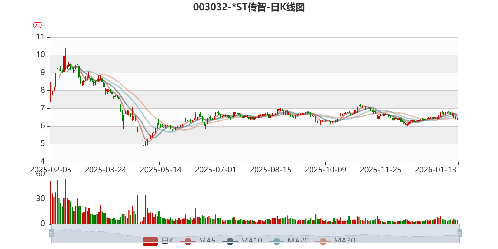中证智能财讯 *ST传智(003032)1月30日晚间披露2025年度业绩预告,预计2025年实现营业收入3.6亿元至4亿元;归母净利润亏损7000万元至1亿元,上年同期亏损1.34亿元;扣非净利润亏损8200万元至1.12亿元,上年同期亏损1.48亿元;基本每股收益-0.17元/股至-0.25元/股。以最新收盘价计算,市净率(LF)约2.05倍,市销率(TTM)约6.75倍。