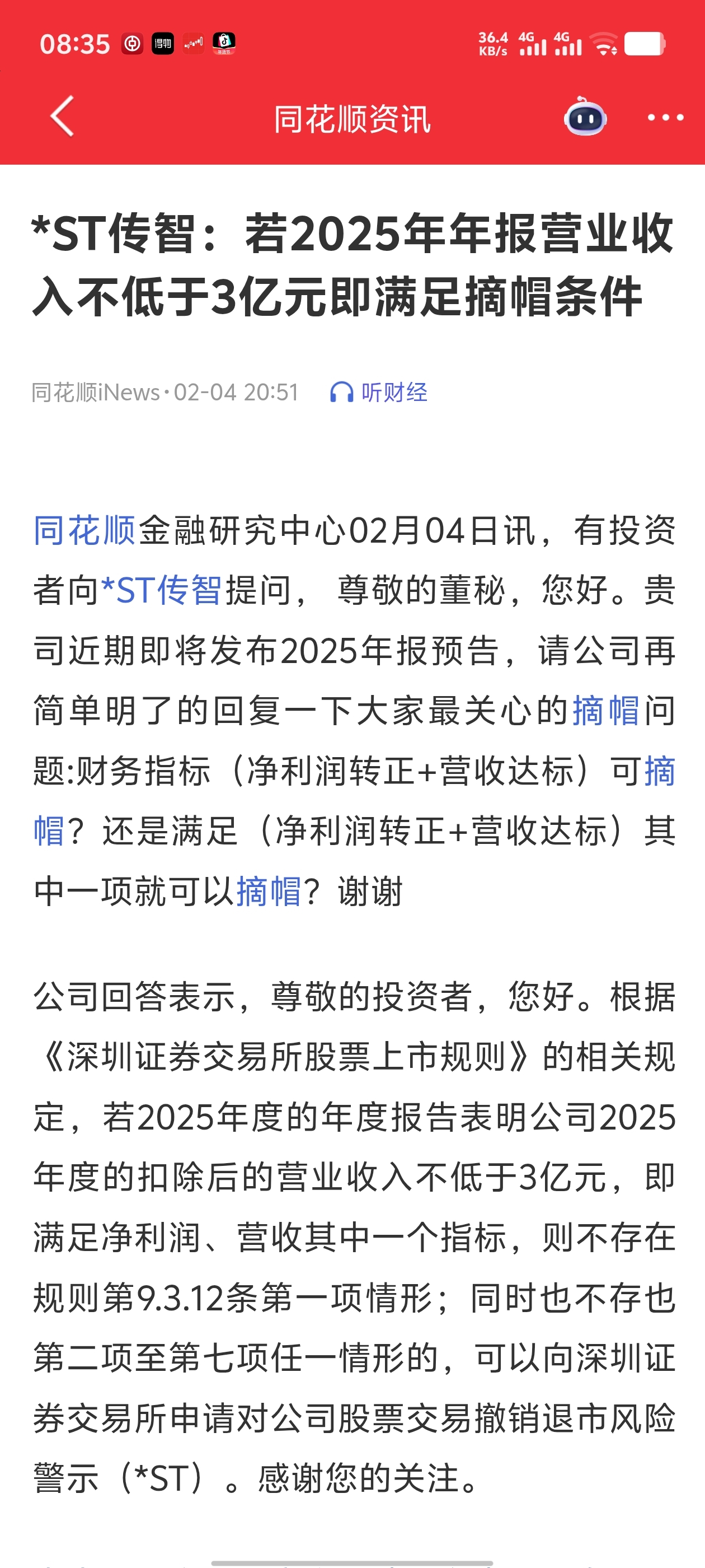 这个公告是年报前必须要发的,还会第二次,第三次,传智妥妥满足三亿,不可能会退市,