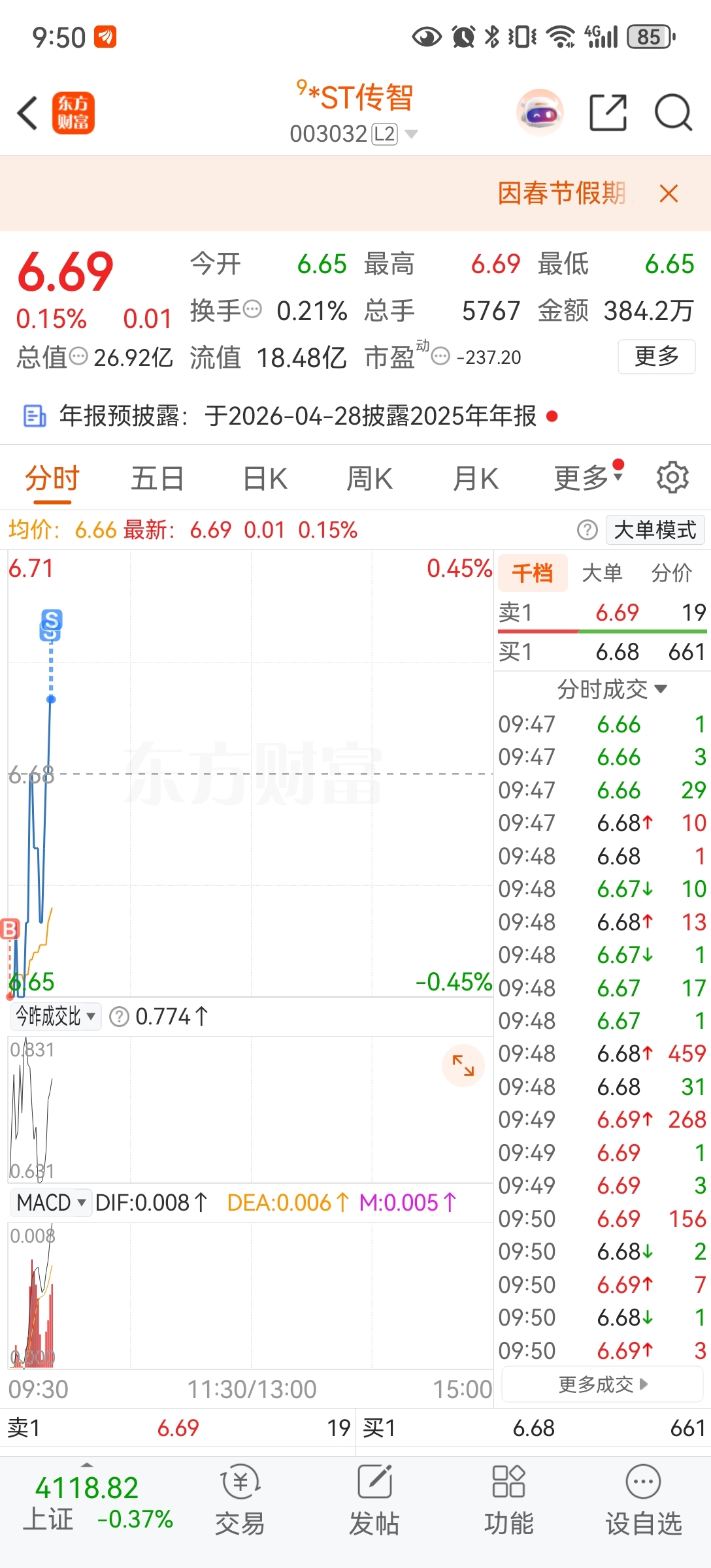 $*ST传智(SZ003032)$ 小手一抖,4分差价到手~