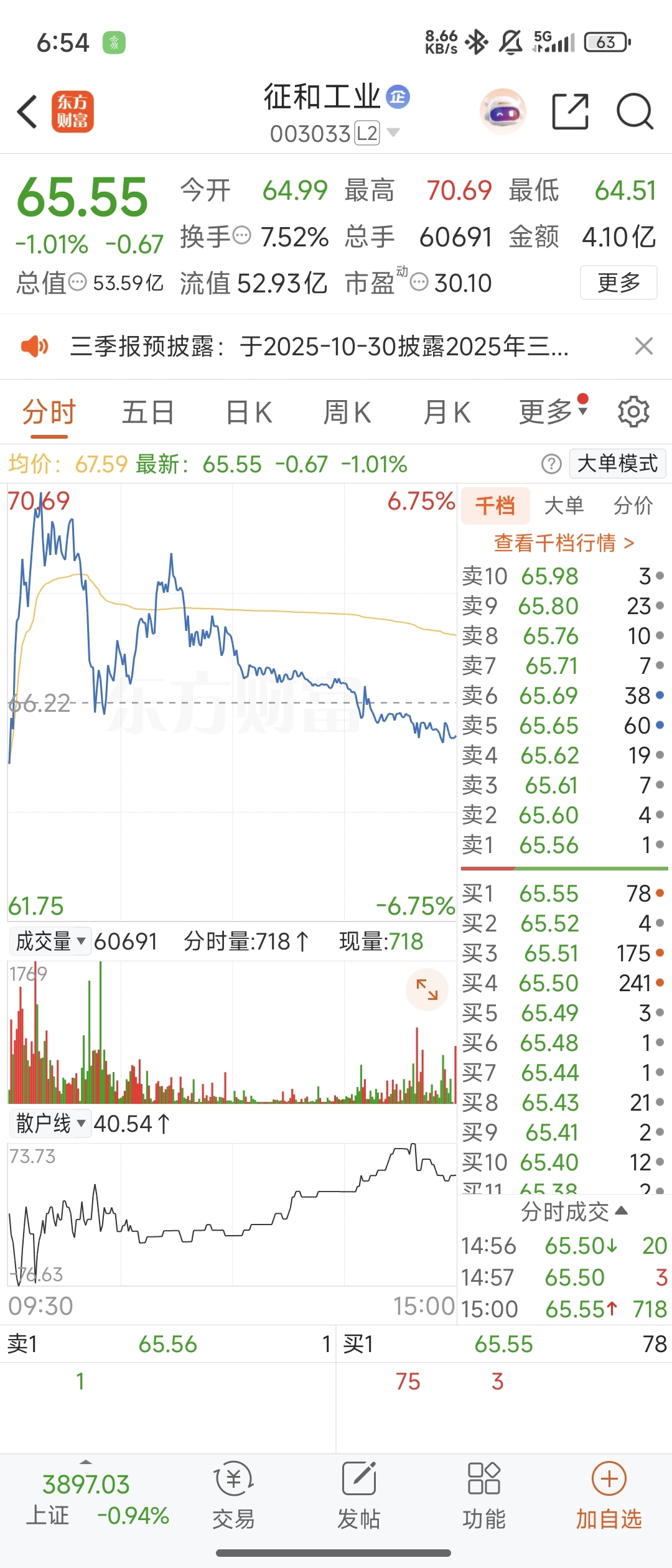 主力出货了。