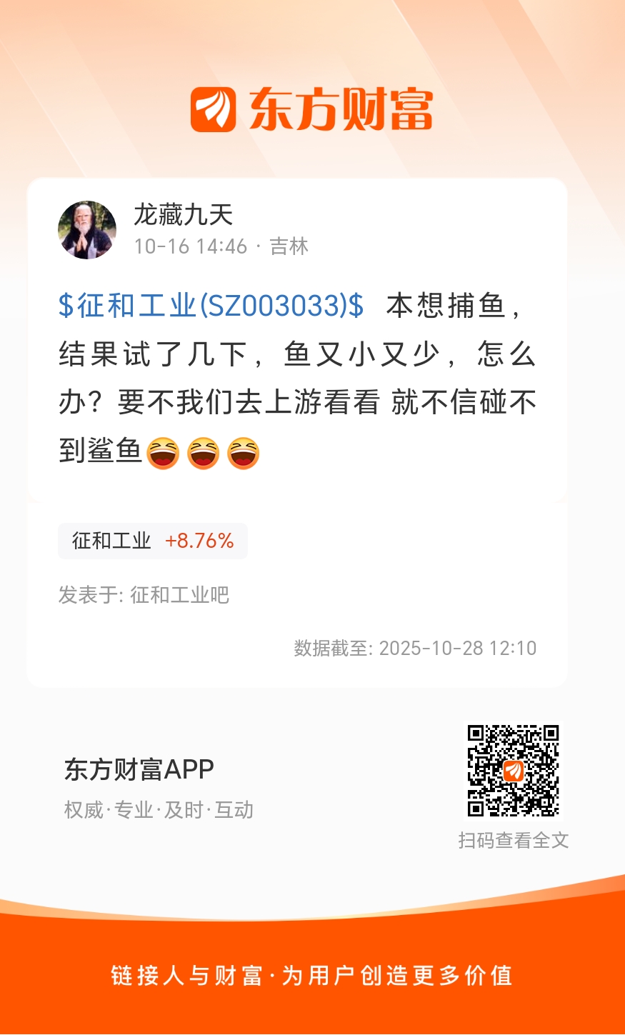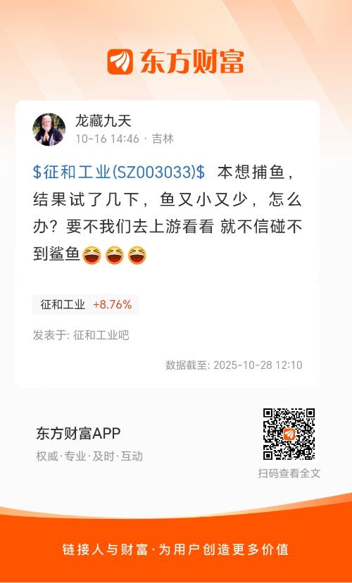$征和工业(SZ003033)$  本想捕鱼,结果试了几下,鱼又小又少,怎么办?要不我们去上游看看 就不信碰不到鲨鱼