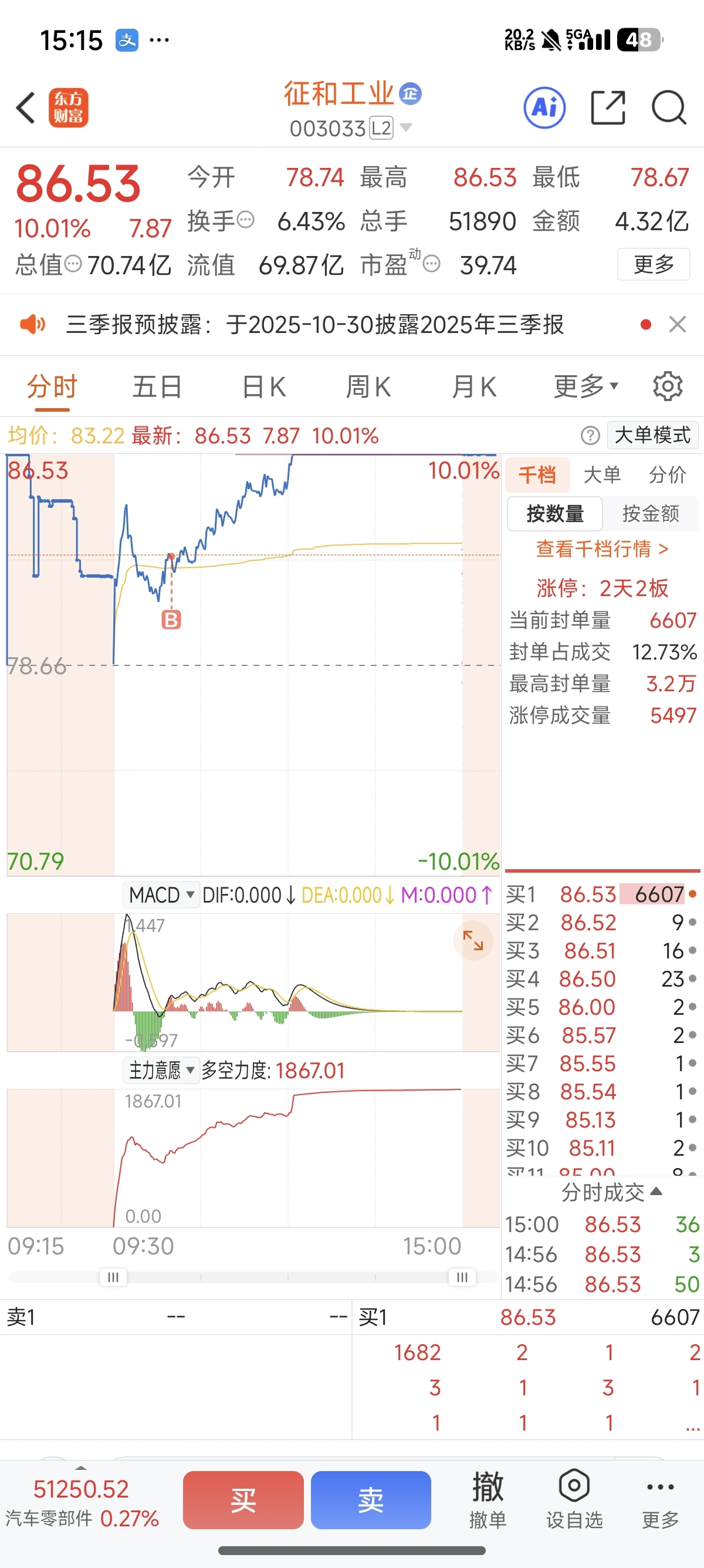 $征和工业(SZ003033)$ 今天这行情没炸板,简直远超预期