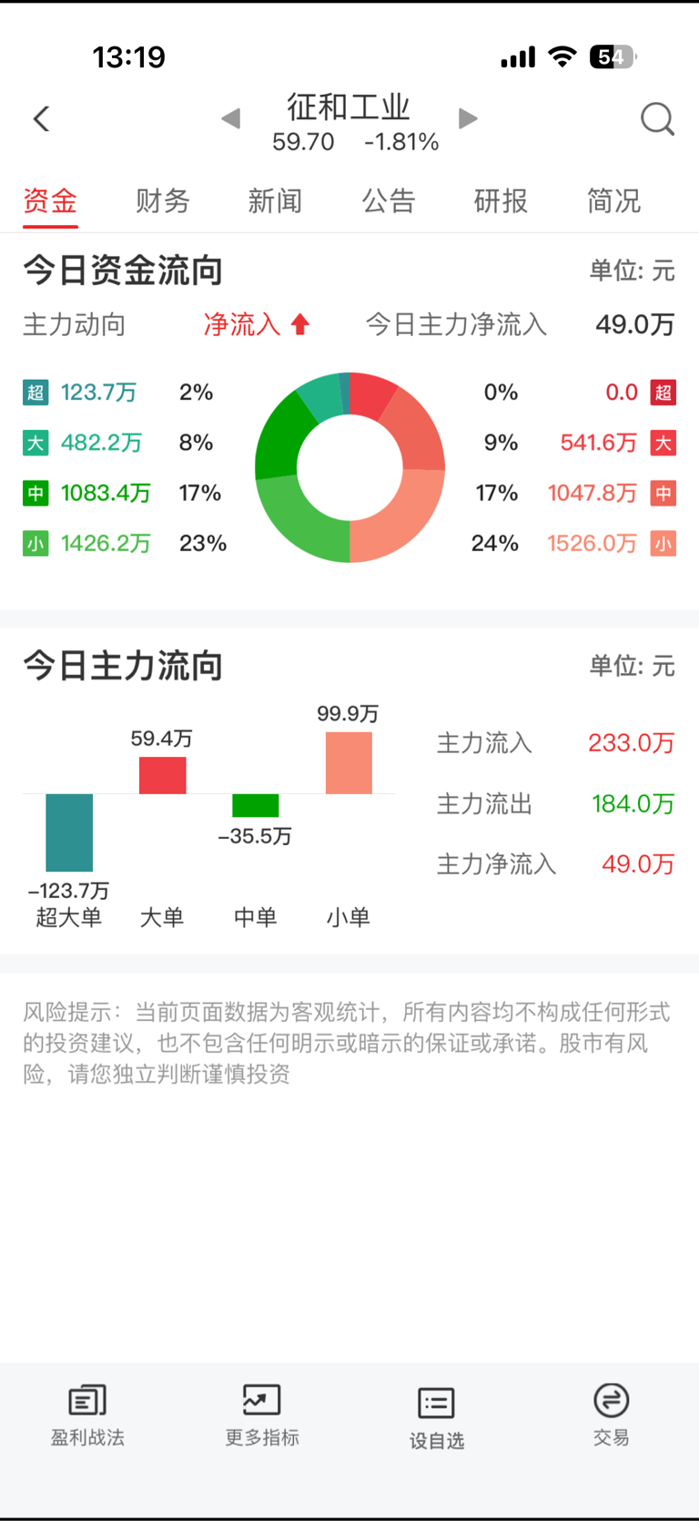 $征和工业(SZ003033)$ 有资金流入了