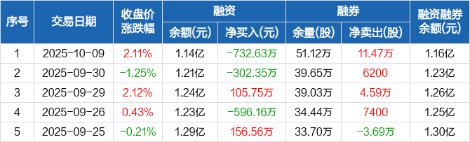 南网能源:融资净偿还732.63万元,融资余额1.14亿元(10-09)
