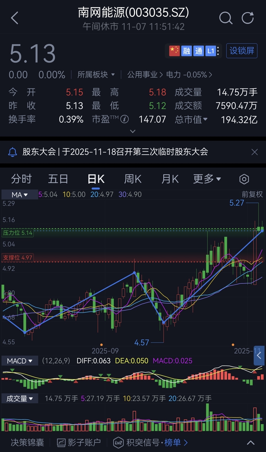 $南网能源(SZ003035)$ 趋势图向上走,可以观望
