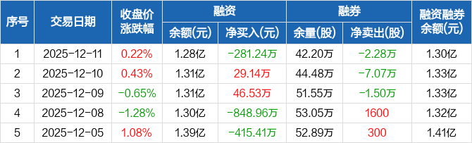南网能源:融资净偿还281.24万元,融资余额1.28亿元(12-11)