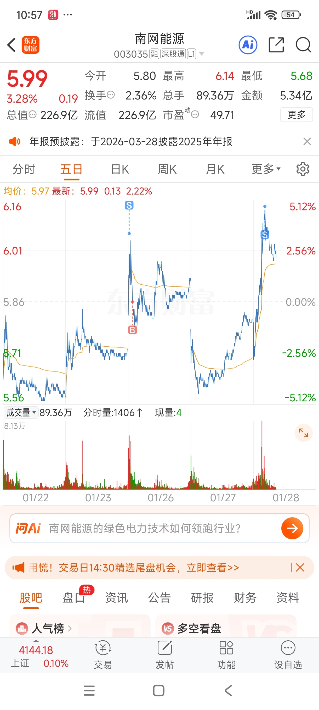 $南网能源(SZ003035)$ 卖的还好,真不知道什么价买,有会买的股友指点指点啊!