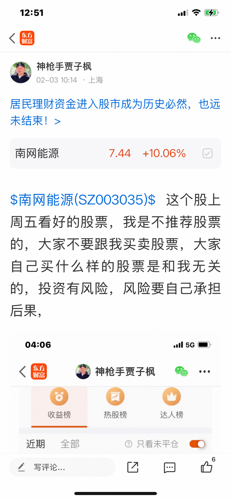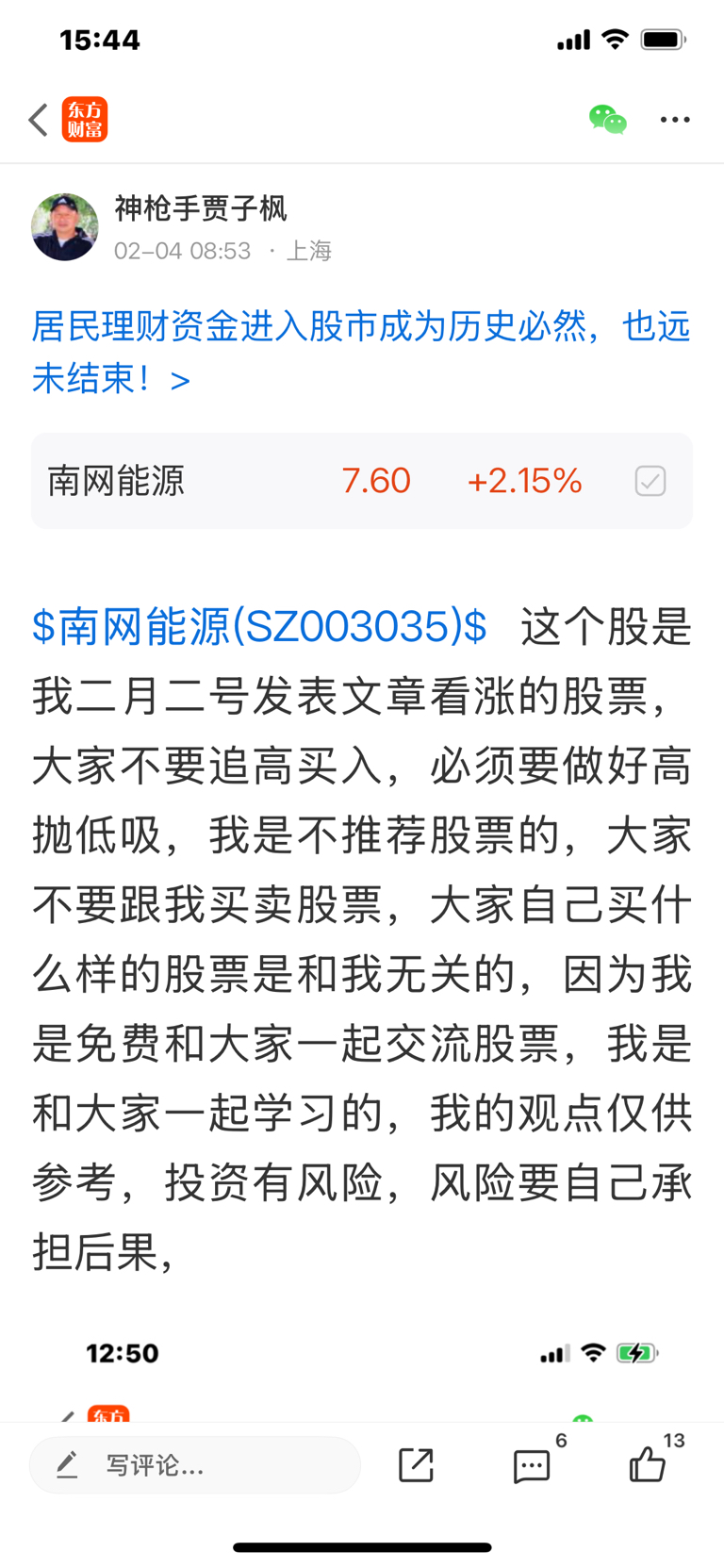$南网能源(SZ003035)$ 这个股我是二月二号发表看涨的文章,大家不要追高买入,必须要做好高抛低吸,我是不推荐股票的,大家不要跟我买卖股票,大家自己买什么样的股票是和我无关的,因为我是免费和大家一起交流股票,我是和大家一起学习的,我的观点仅供参考,投资有风险,风险要自己承担后果,