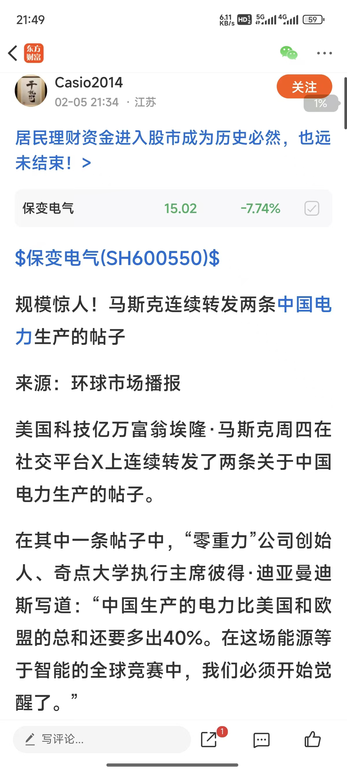 温馨提示: 1.根据《证券法》规定,禁止编造、传播虚假信息或者误导性信息,扰乱证券市场;2.用户在本社区发表的所有资料、言论等仅代表个人观点,与本网站立场无关,不对您构成任何投资建议。用户应基于自己的独立判断,自行决定证券投资并承担相应风险。《东方财富社区管理规定》