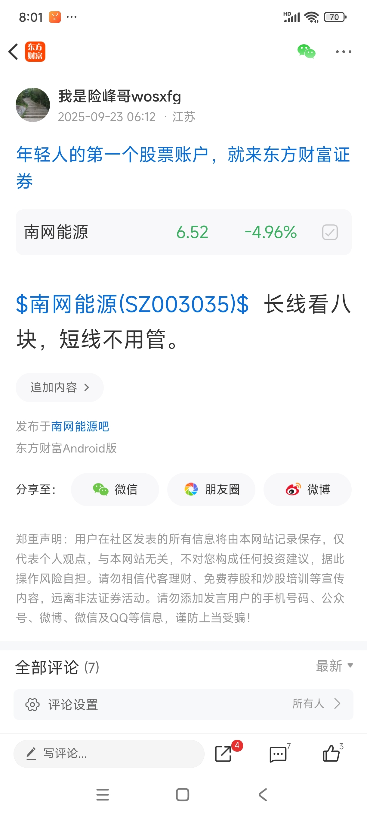 温馨提示: 1.根据《证券法》规定,禁止编造、传播虚假信息或者误导性信息,扰乱证券市场;2.用户在本社区发表的所有资料、言论等仅代表个人观点,与本网站立场无关,不对您构成任何投资建议。用户应基于自己的独立判断,自行决定证券投资并承担相应风险。《东方财富社区管理规定》