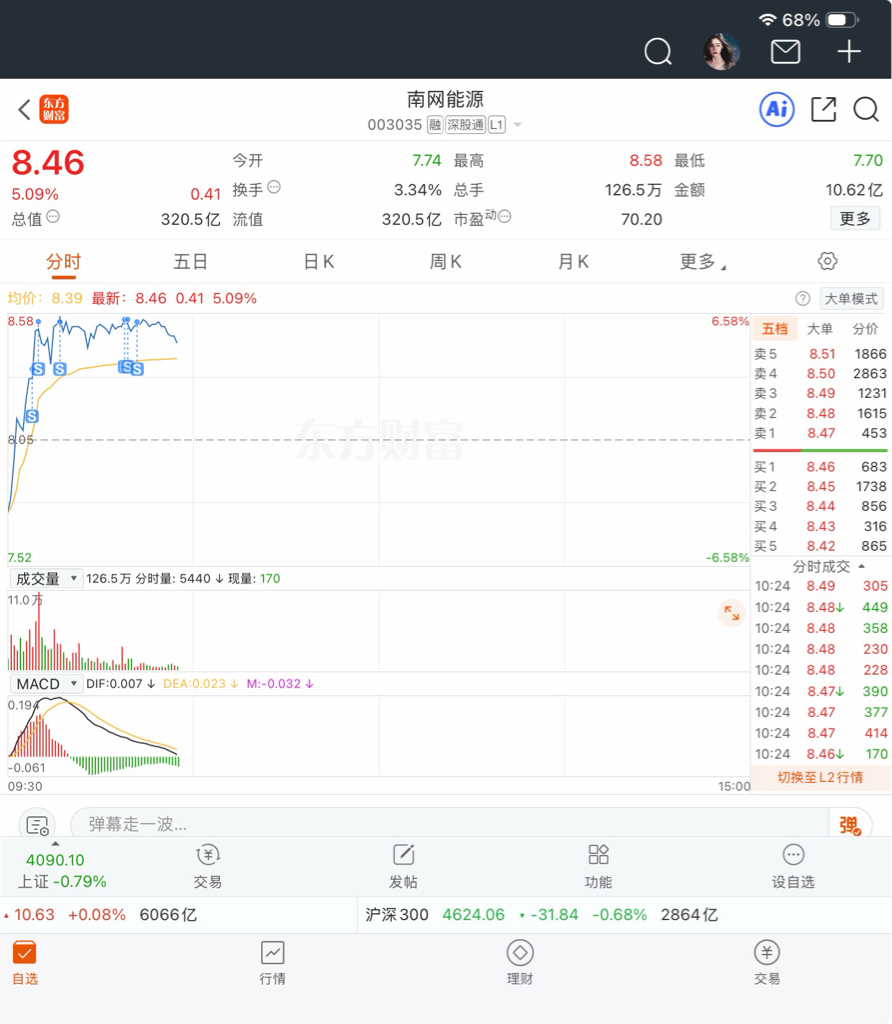 $南网能源(SZ003035)$ 8.55抛了13000股