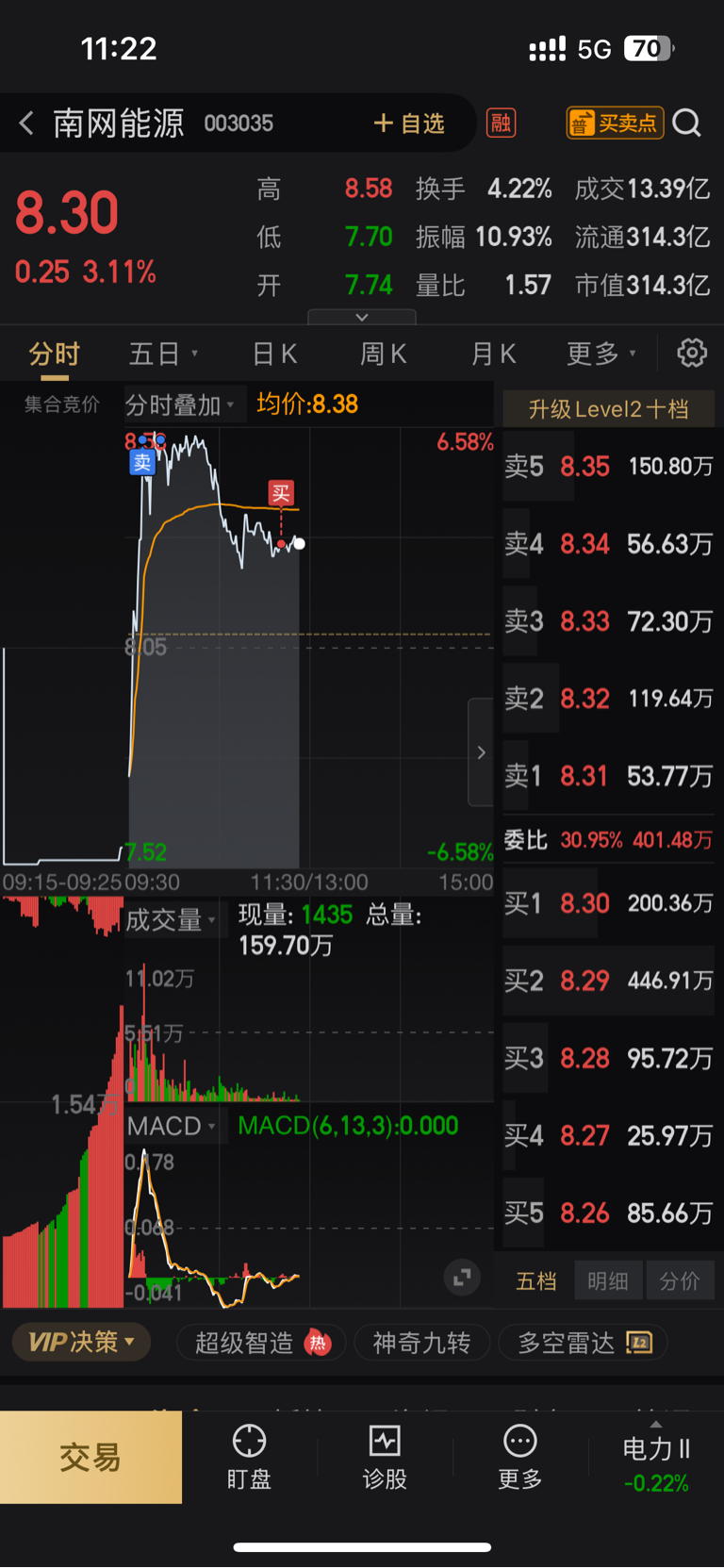 $南网能源(SZ003035)$ 别慌,获利盘兑现换手,做T,板块够硬,就不怕挨揍,我冲高分批减仓,一次25000股,随后涨不动有掉头迹象抛25000股,留底仓5000股,现在又接买入10000股接回来,做波段