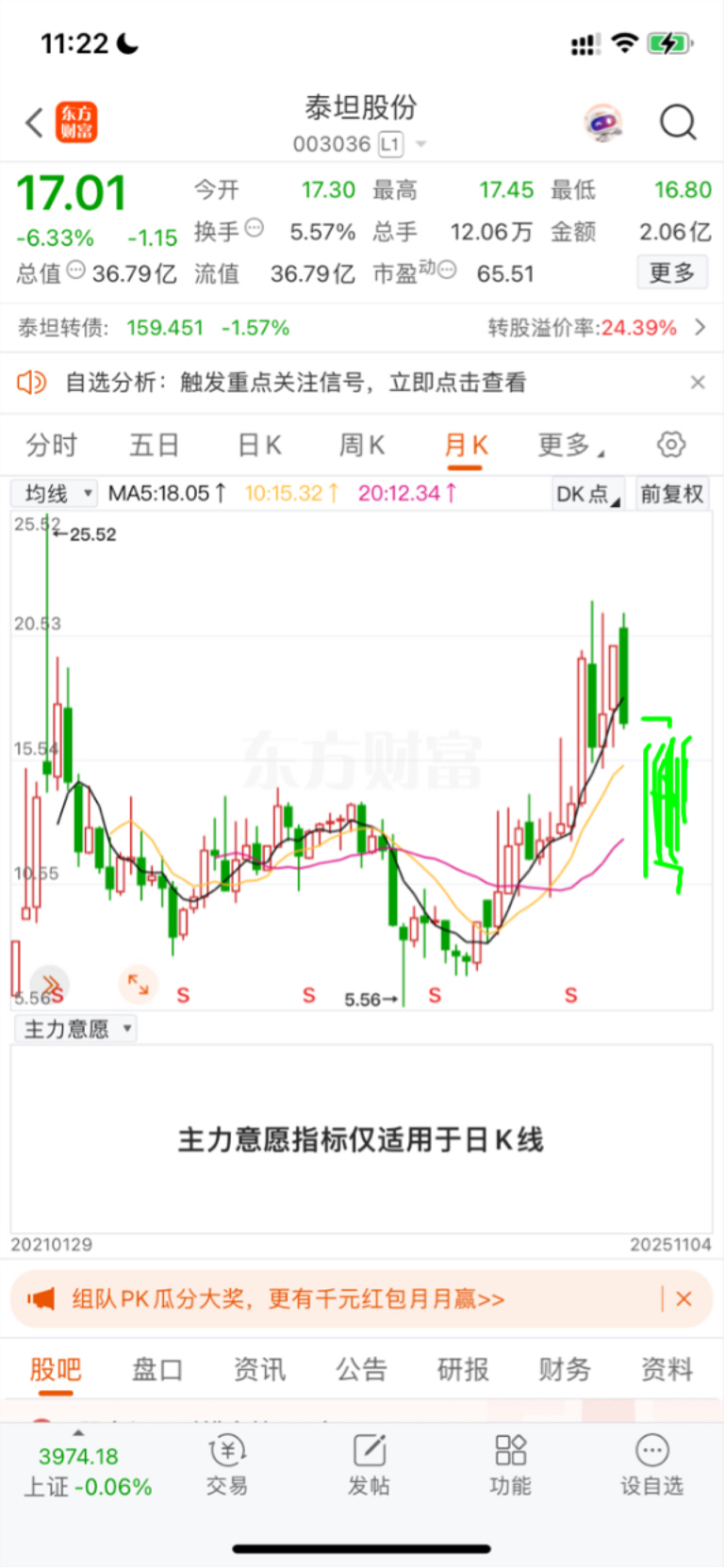 $泰坦股份(SZ003036)$ 大幅度回调开始