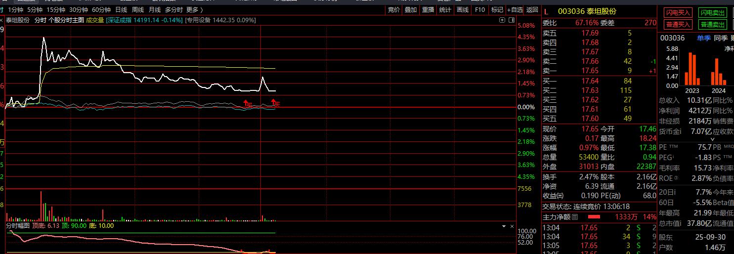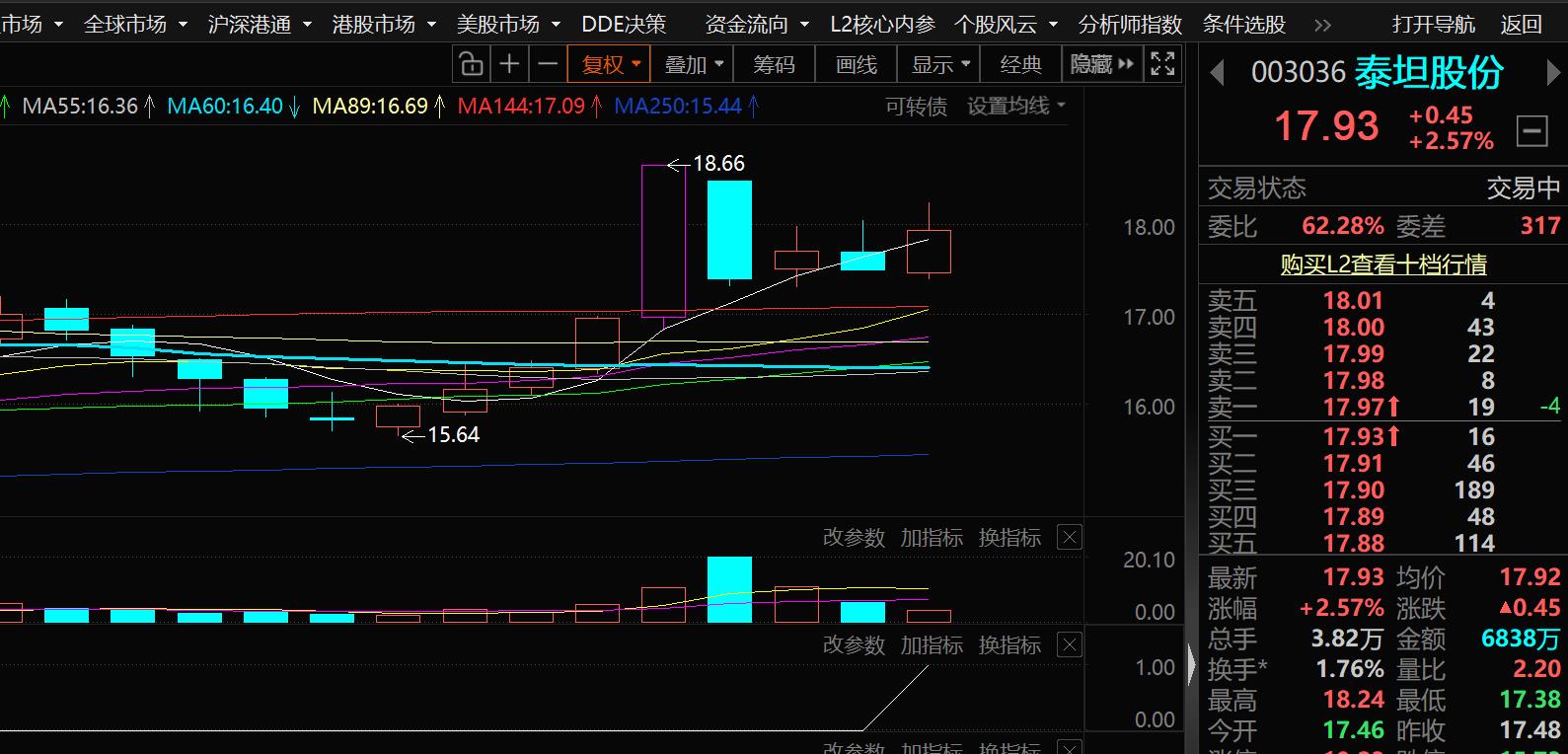 泰坦股份出低吸信号17.64附近