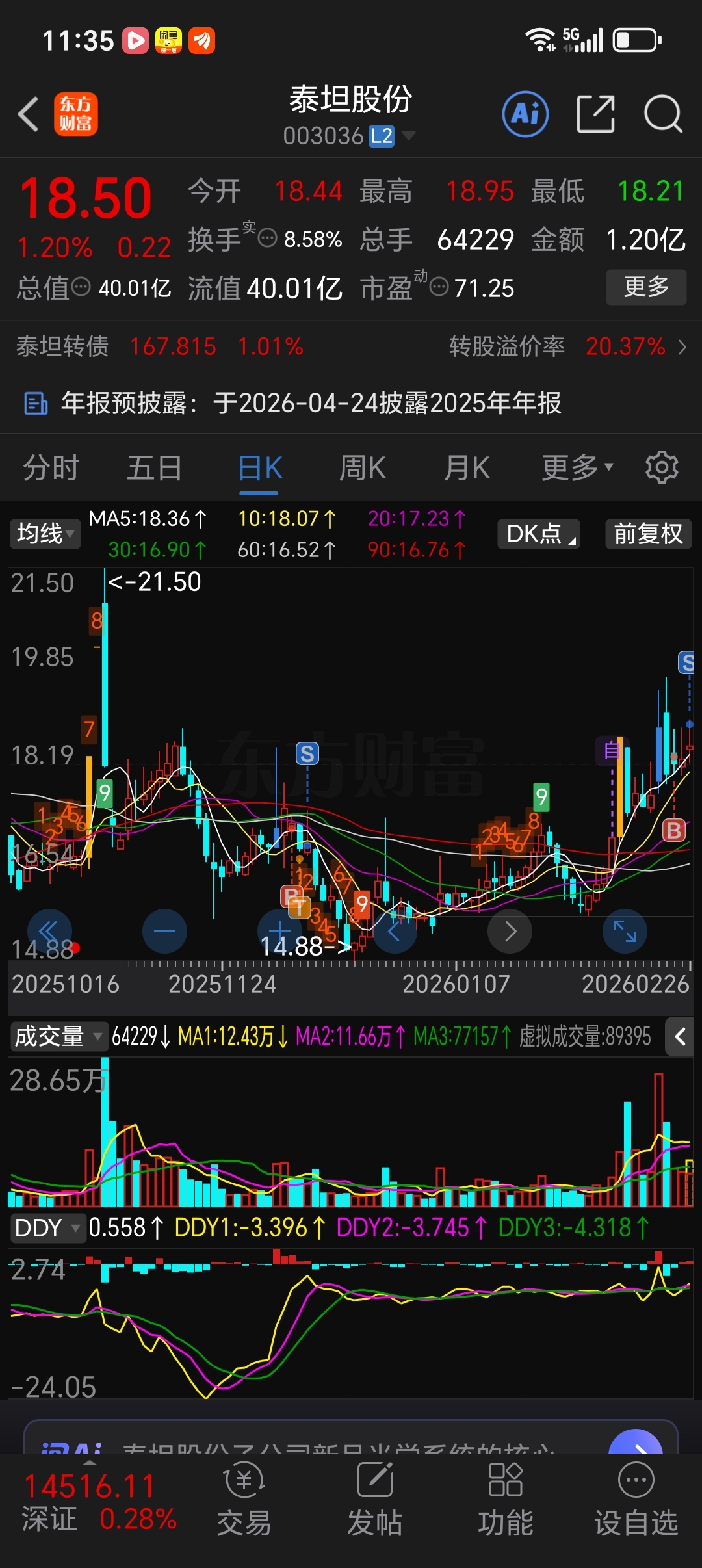 $泰坦股份(SZ003036)$ 昨天早上没卖后悔,今天还不卖掉,下午再接回来