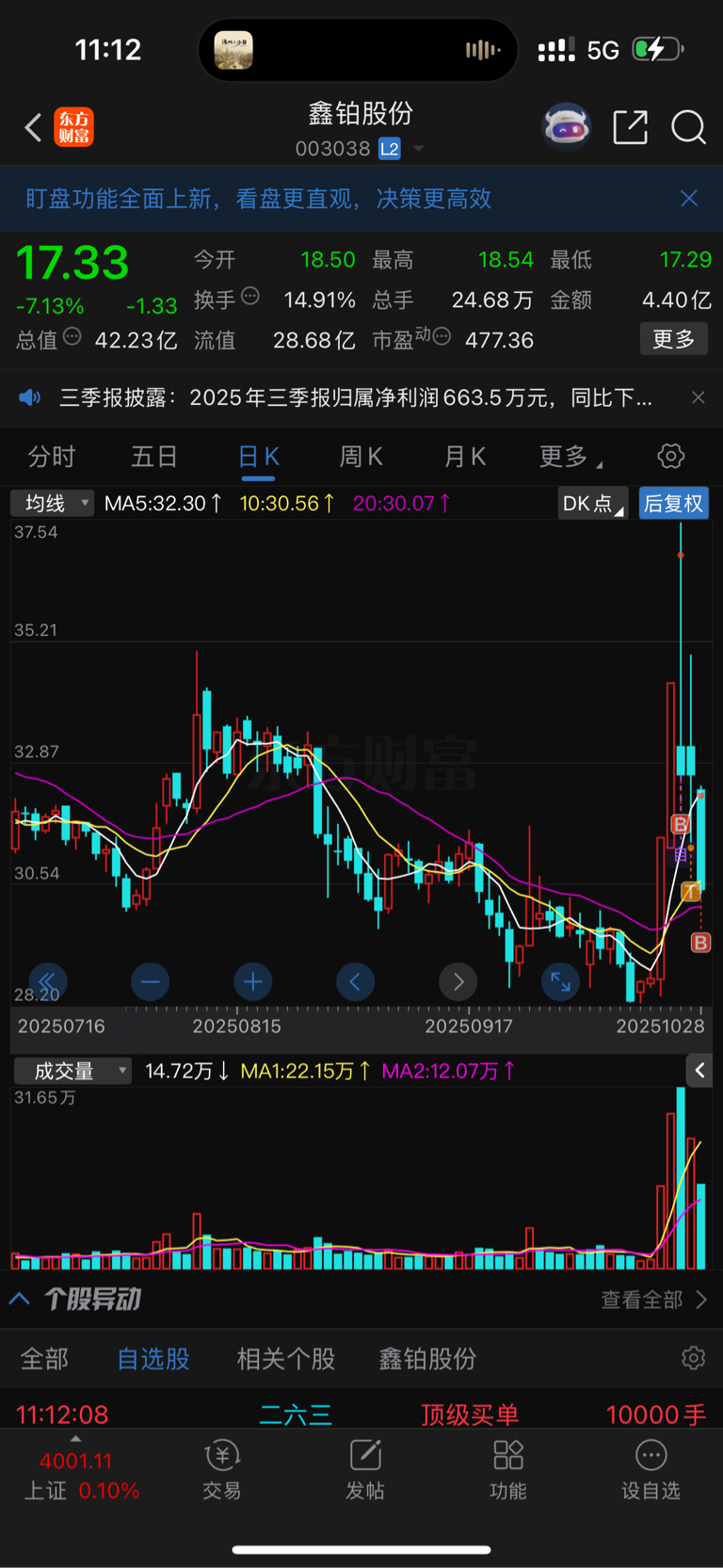 卖了半仓进了你 几天白玩