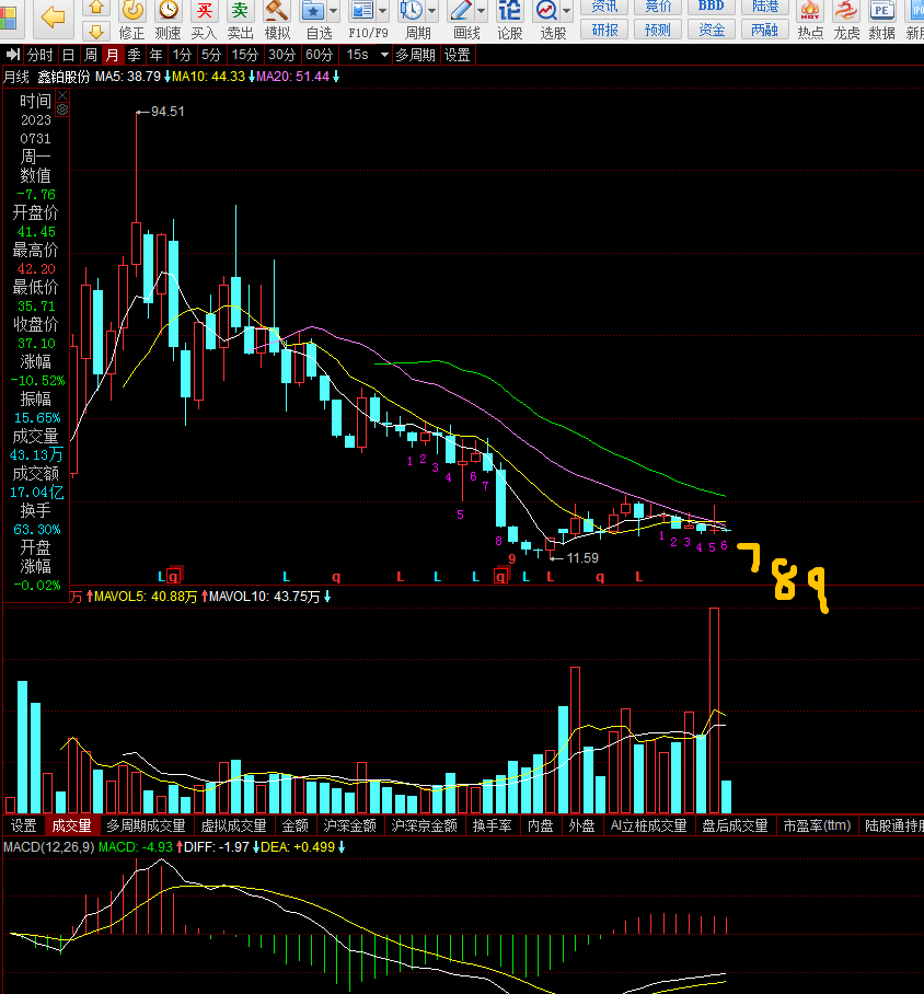 月线还有789要下跌,这是今年大牛股啊,几年都没涨过