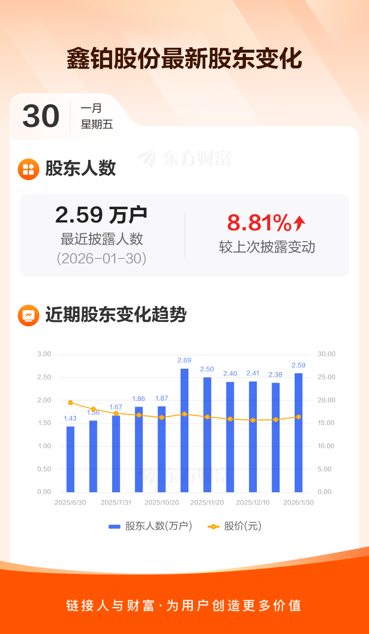 鑫铂股份:截至1月30日最新股东户数2.59万户,较上期增加8.81%