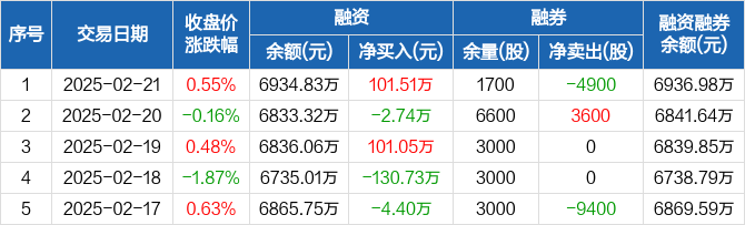 顺控发展:融资净买入101.51万元,融资余额6934.83万元(02-21)