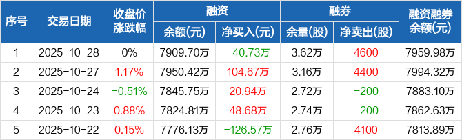 顺控发展:融资净偿还40.73万元,融资余额7909.7万元(10-28)