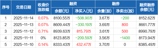 顺控发展:融资净偿还508.9万元,融资余额8100.55万元(11-14)