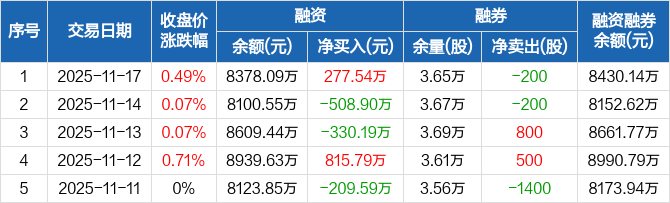 顺控发展:融资净买入277.54万元,融资余额8378.09万元(11-17)