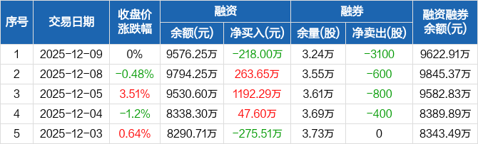 顺控发展:融资净偿还218万元,融资余额9576.25万元(12-09)